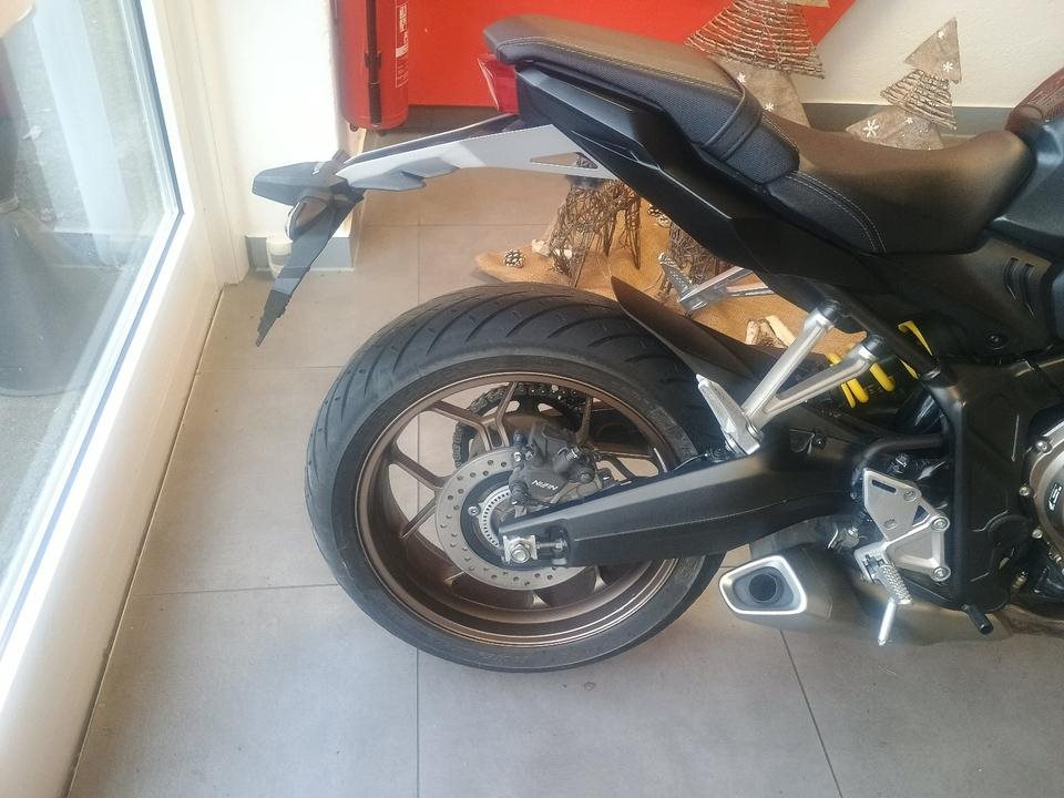 Honda's CB650R proves brilliantly that four-cylinder naked bikes with little displacement are also a real source of joy on the country road. The engine tuning provides enough pressure from the hairpin bend and rewards with a wonderful four-cylinder shriek after a short wait. The chassis components offer a solid balance between everyday life and sportiness.